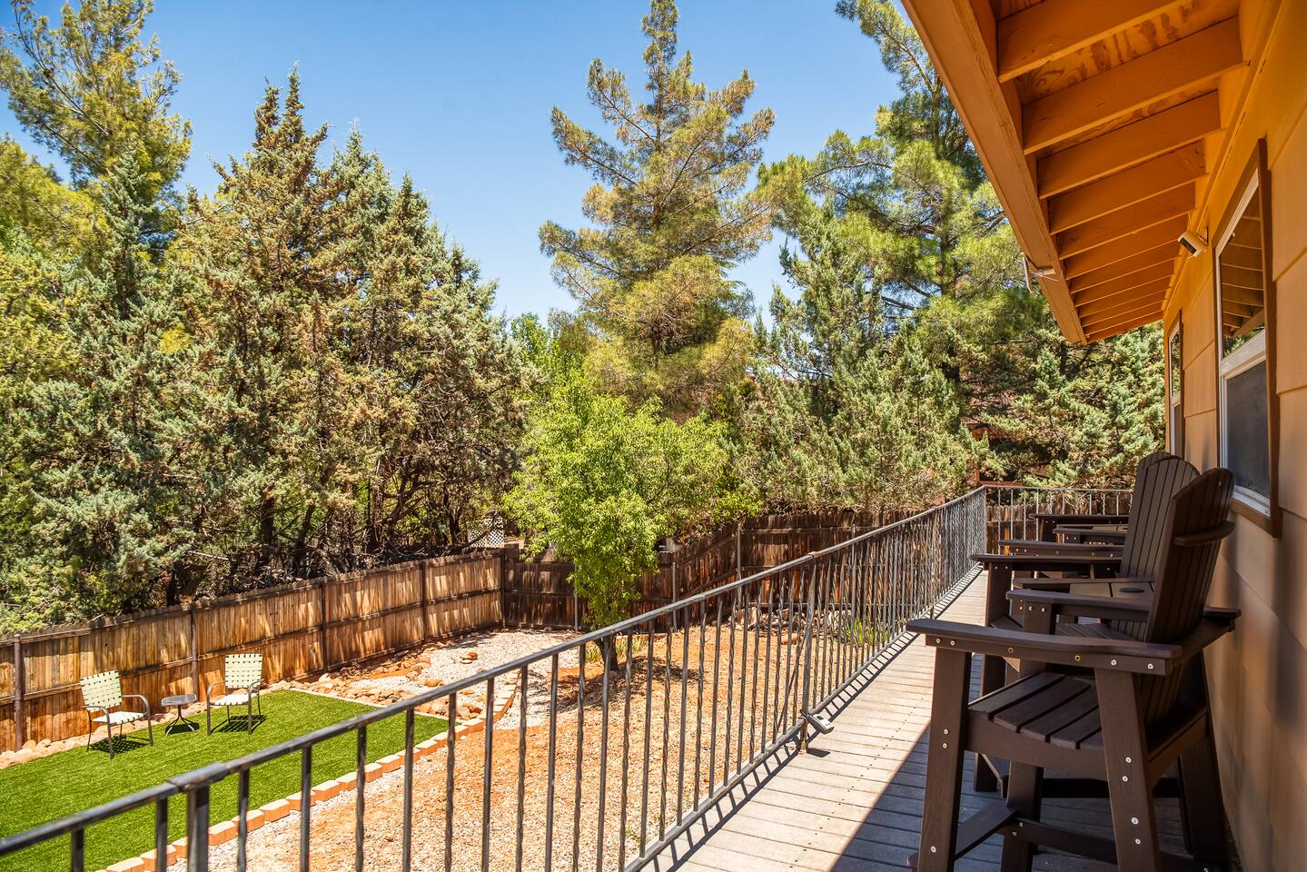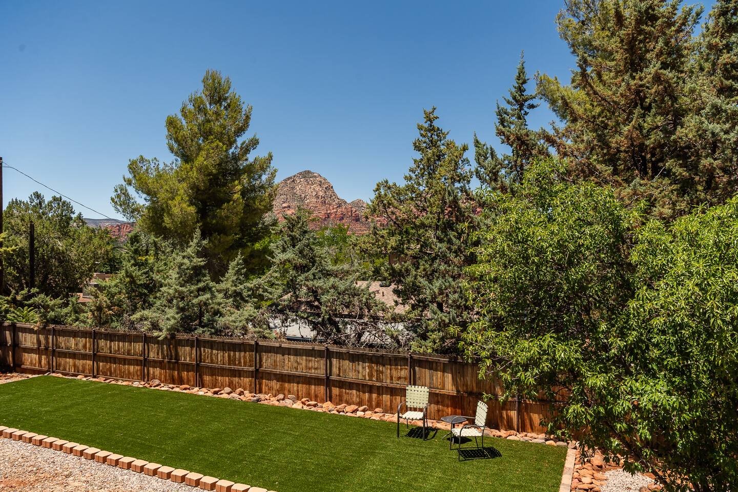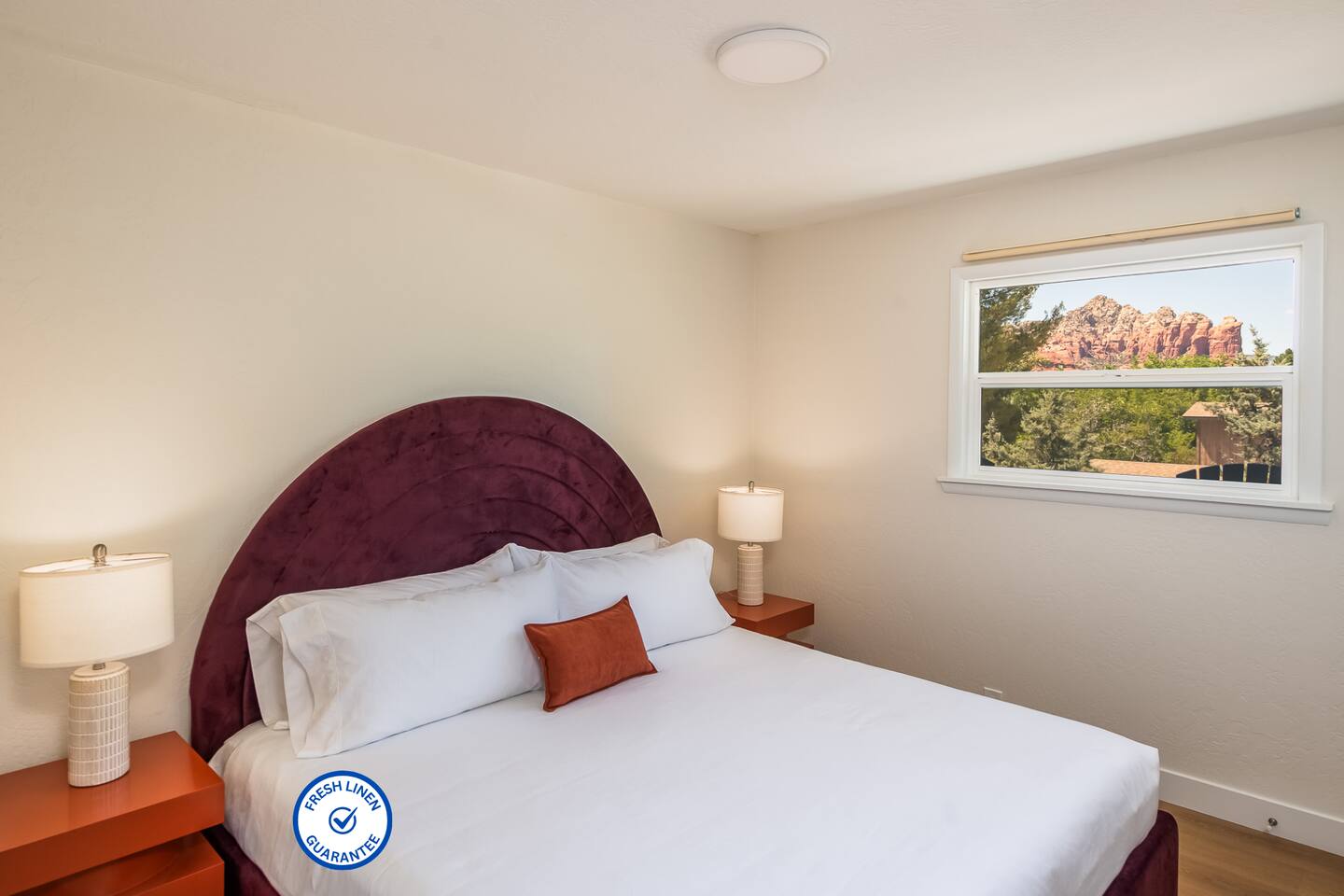 🛏️ BEDS & BATHS • 2 bedrooms, both with Red Rock views and King beds • 2 bathrooms, one of which is attached en-suite. • Amenities provided: hotel-quality cotton linens— no stuffy polyester sheets here! Towels, body soap, shampoo, conditioner, and hair dryer • After each stay, our linens and towels are professionally cleaned off-site. We don’t do on-site quick washes— so you’ll always arrive to fresh, hotel-quality bedding. ✨ YOUR PRIVATE SEDONA SANCTUARY & WELLNESS RETREAT We believe your stay in the Red Rocks should be as restorative as it is adventurous. Beyond the trails, we’ve curated a dedicated In-Home Wellness Space designed to help you ground, recover, and reset. 💡 Full-Spectrum Red Light Therapy: Perfect for post-hike recovery. Our professional-grade panel uses both Red and Near-Infrared wavelengths to soothe sore muscles, reduce inflammation, and boost skin health. 🧘 The Meditation Station: Find your center with our authentic Tibetan Singing Bowl and a curated collection of Sedona stones for grounding. 🌟 Atmospheric Healing: Relax in the warm, sunset-inspired glow of our Himalayan Salt Lamp, designed to provide a "blue-light free" environment for a deeper, more restful sleep. 🌿 Whether you’re here for a spiritual journey or a world-class hiking expedition, this space is your personal haven to recharge for the next day's adventure. 💻 DEDICATED WORKSPACE • Desk area in one of the bedrooms with natural light and 24" monitor 🛋️ LIVING & DINING • Open concept living room, kitchen, and dining area with spectacular views! • Serta® Sleeper Sofa converts into a Queen-size bed that's actually comfortable to sleep on! • 58” smart TV • Dining table for 6 • Fully equipped kitchen with appliances, pots, pans, cooking utensils, flatware & table settings for 6 • Keurig coffee maker with complimentary coffee pods, sugar, and creamer 🏜️ OUTDOOR • Private deck with panoramic red rock views • 50-foot turf run 🧺 LAUNDRY • Stackable washer & dryer • Detergent pods and dryer sheets provided 🐶 PET-FRIENDLY Because vacation is better when you don't have to leave a member of the family behind 🤎